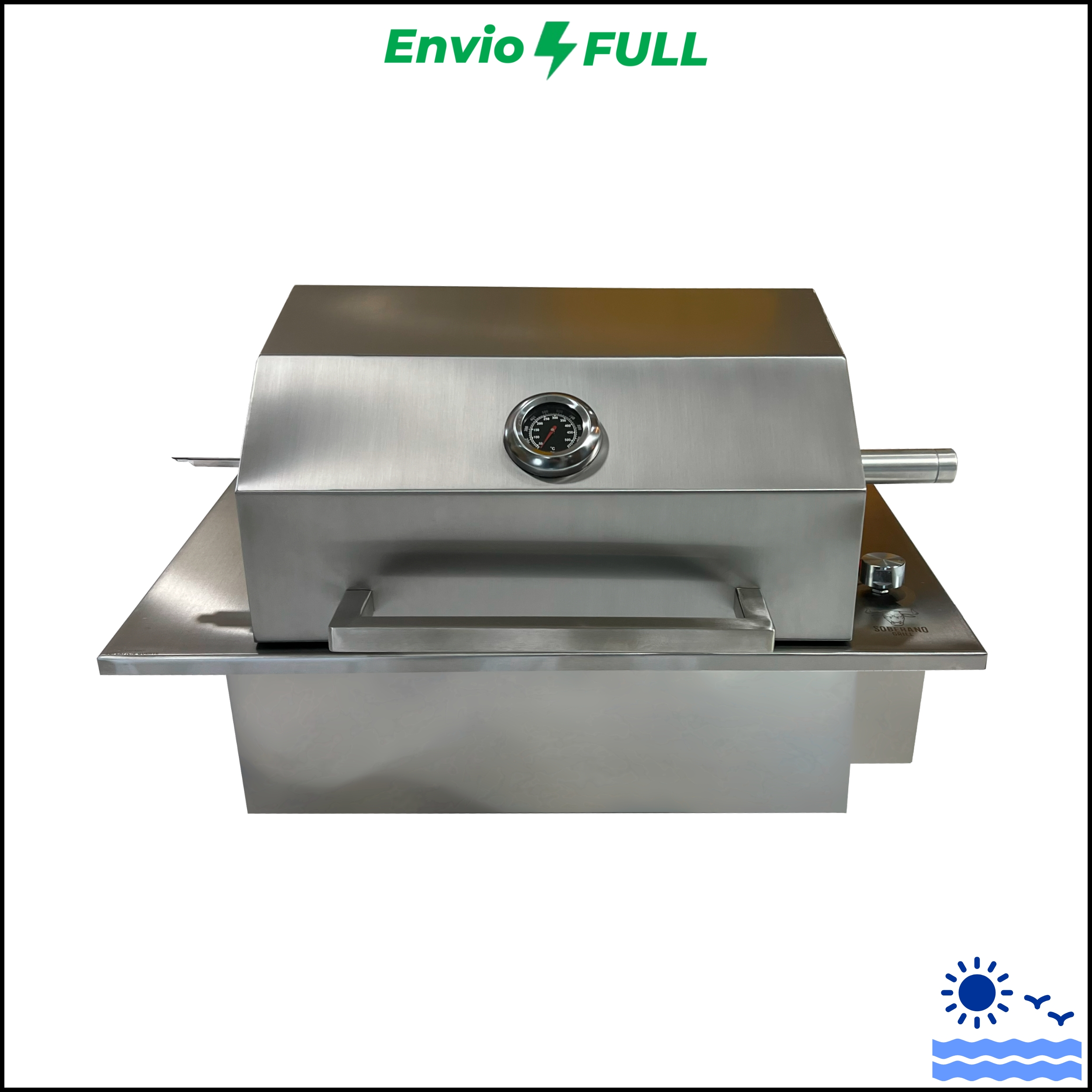 Fabricada em Aço Inox 304 escovado, material reconhecido pela sua alta resistência à corrosão, durabilidade e padrão premium, ela entrega robustez profissional com um design moderno e sofisticado que valoriza qualquer projeto de área gourmet planejada.