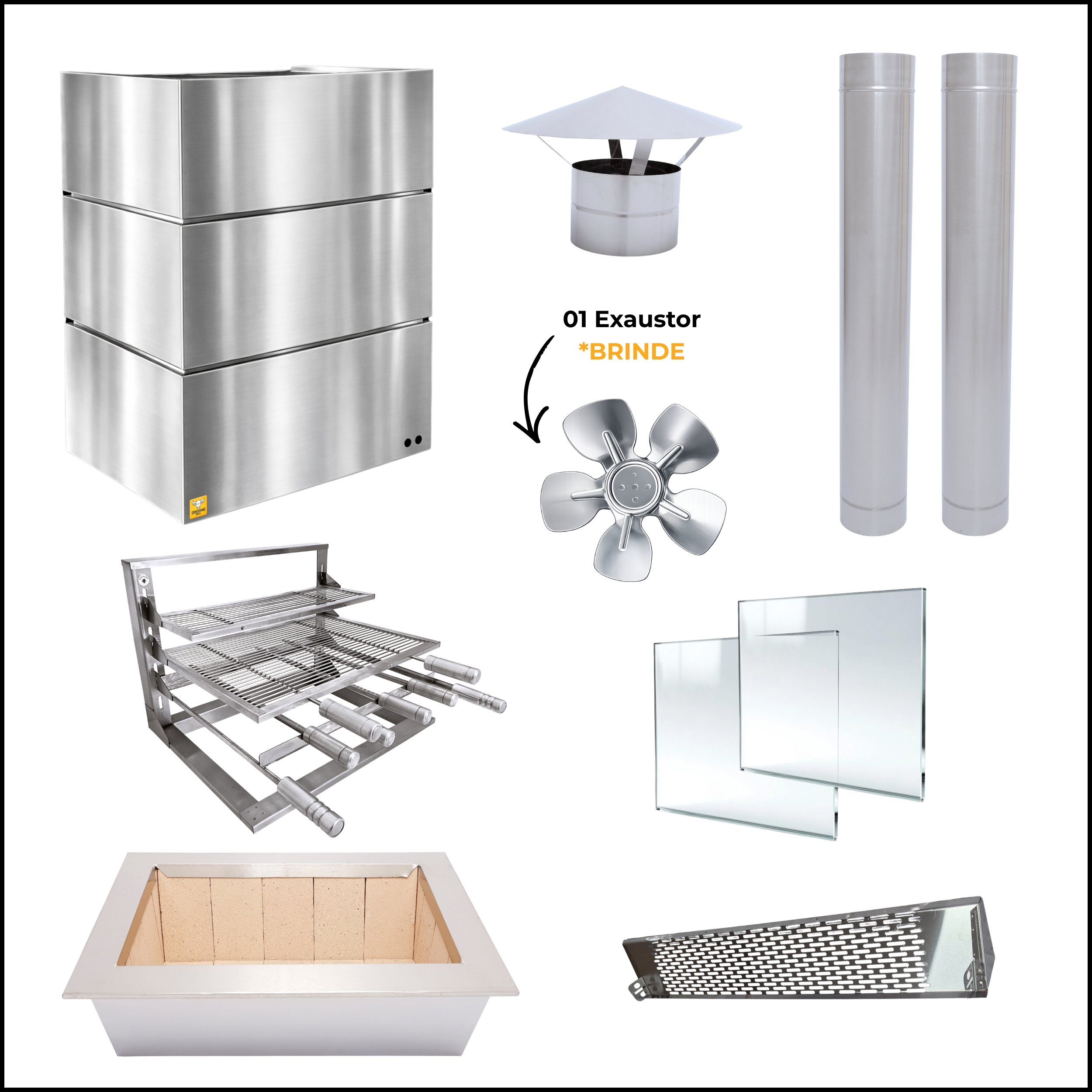 | 1 | Braseiro Blindado em Inox 304 | 50x40 cm | 60x40 cm | 70x40 cm |