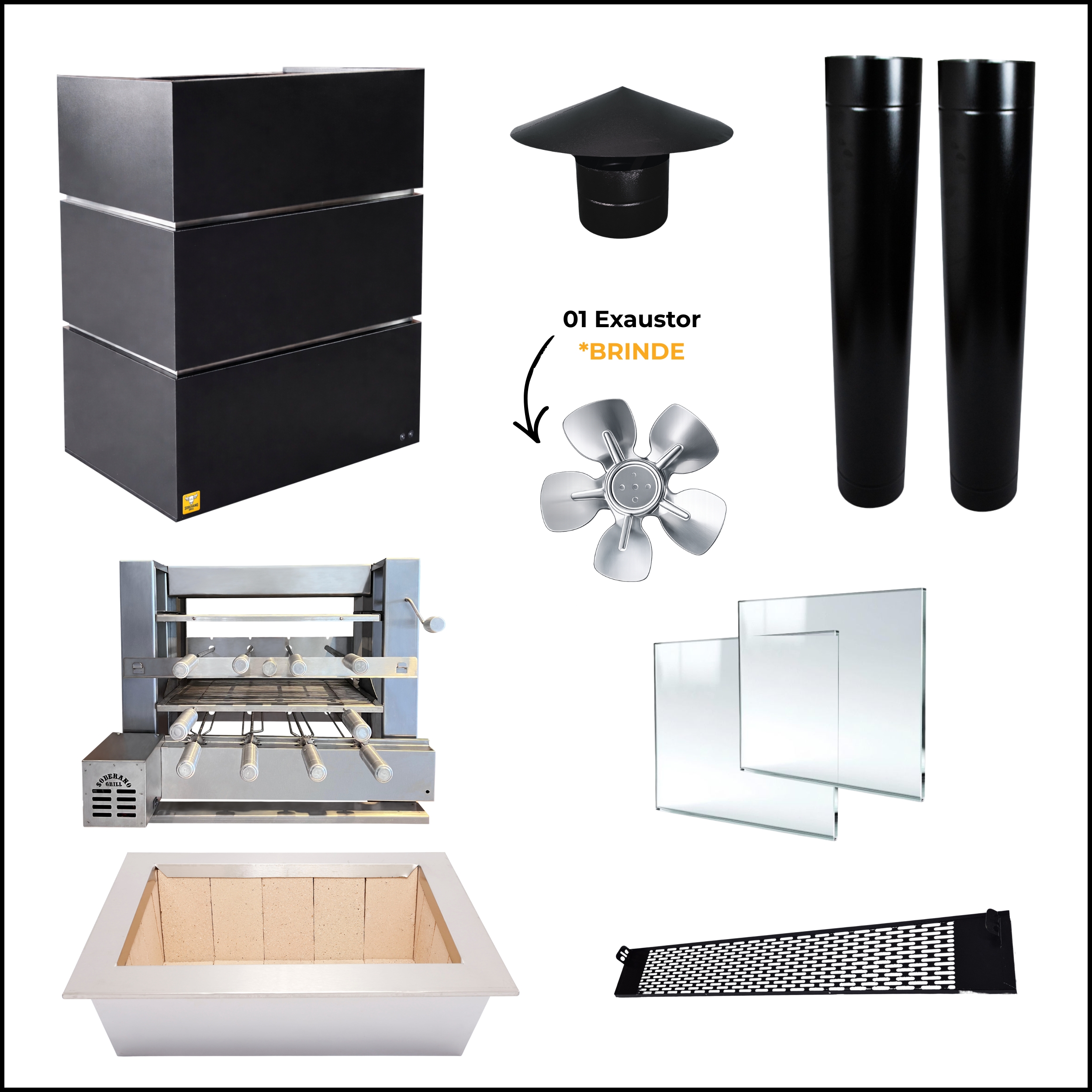 | 1 | Braseiro Blindado em Inox 430 | 50x40 cm | 60x40 cm | 70x40 cm |