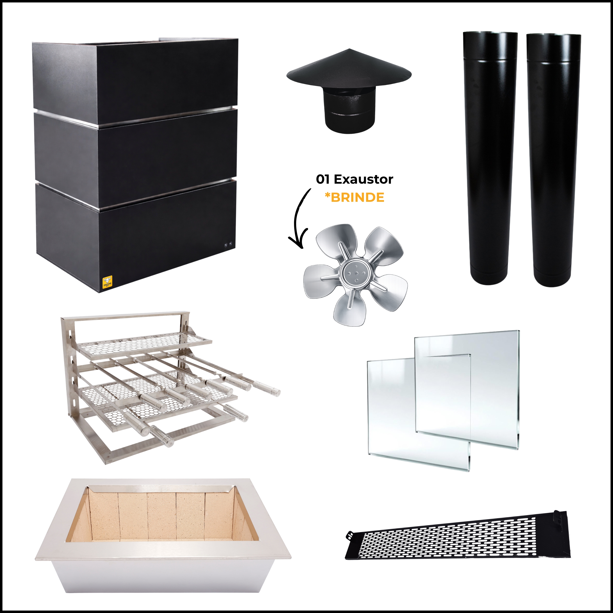 | 1 | Braseiro Blindado em Inox 430 | 50x40 cm | 60x40 cm | 70x40 cm |