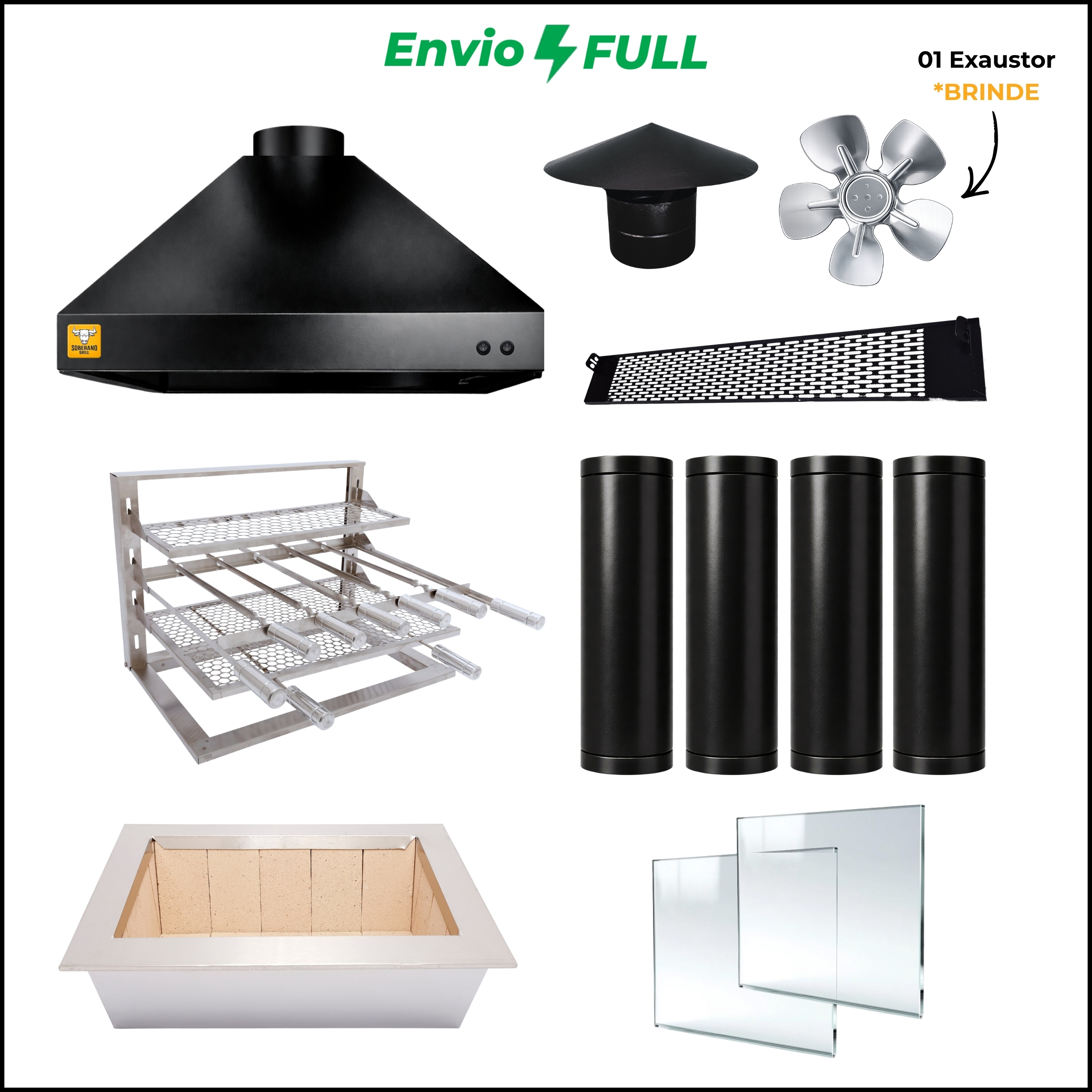 CHURRASQUEIRA GOURMET COMPLETA – 3 ÁGUAS PRETA COM SUPORTE EM L